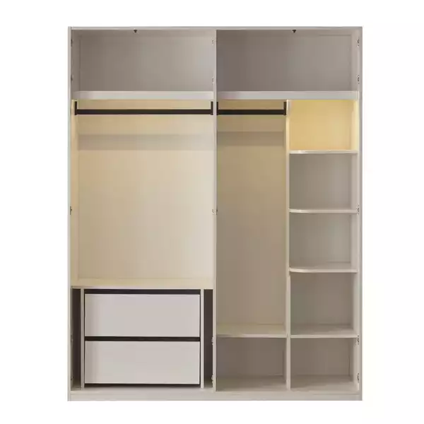 Takım içeriğinde 1 adet GRACE Şifonyer, 1 adet GRACE Şifonyer Ayna, 1 adet GRACE Komodin, 1 adet GRACE Puf, 1 adet GRACE Bazalı Karyola 160*200, 1 adet GRACE Karyola 160*200, 1 adet GRACE 1 Kapılı Dolap (Raflı), 1 adet GRACE 1 Kapılı Dolap (Askılıklı), 1 adet GRACE Köşe Modülü bulunmaktadır.