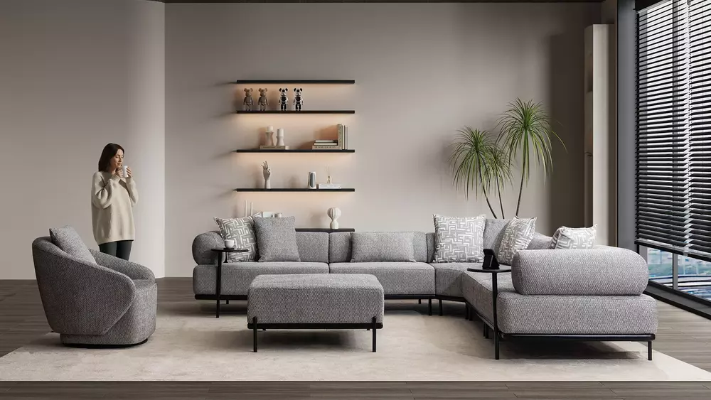 Takım içeriğinde 1 adet VİOLET 1 'Li Kollu Modül 120 cm, 1 adet VİOLET Orta Modül 90 cm, 1 adet VİOLET Orta Modül 70 cm lik, 1 adet VİOLET Köşe Modül, 1 adet VİOLET Puf, 1 adet VİOLET Sehpa Modül bulunmaktadır.